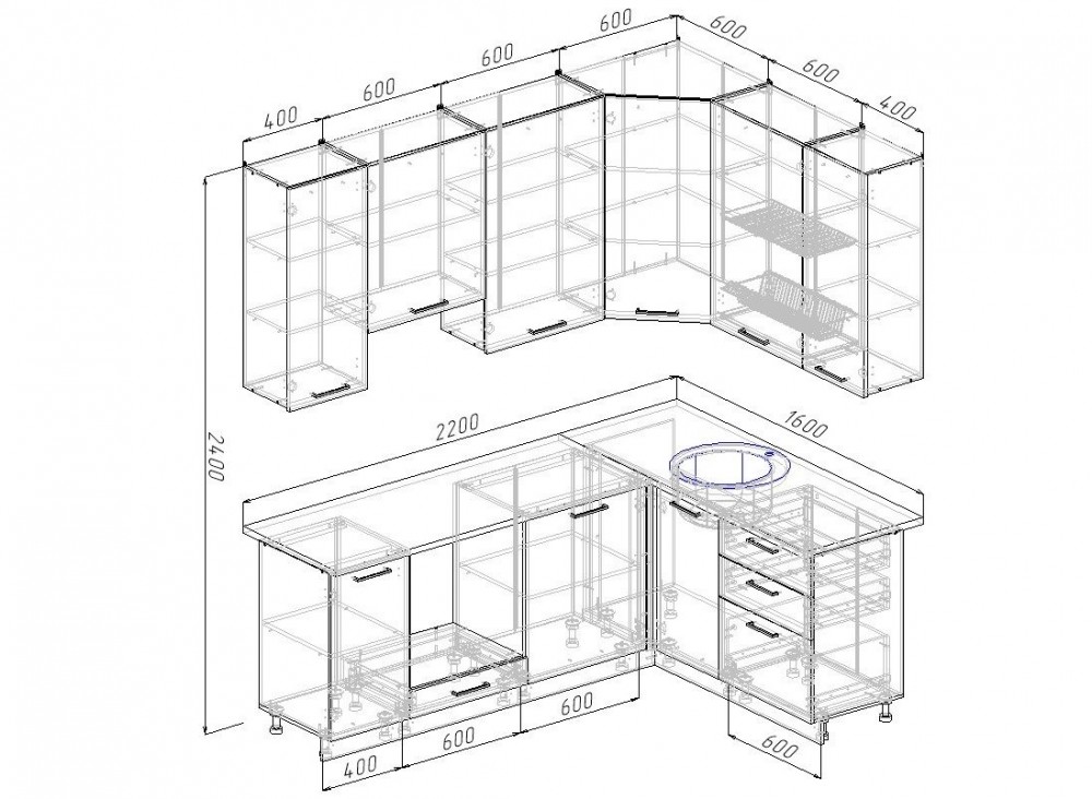 Каталог мебели/Мебель для Кухни/Кухонные гарнитуры/Угловые кухни