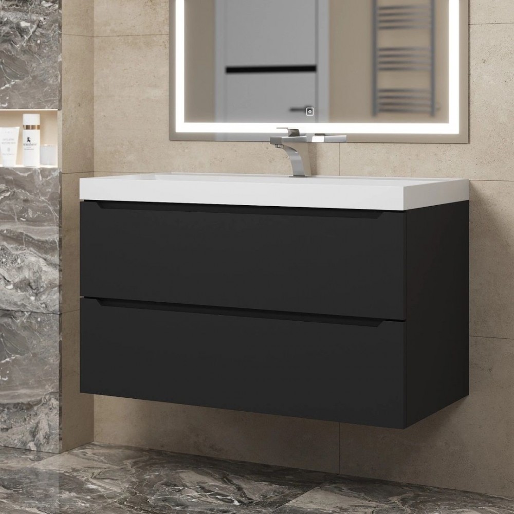 Тумба под раковину Uperwood Tanos 90 см, подвесная, черная матовая